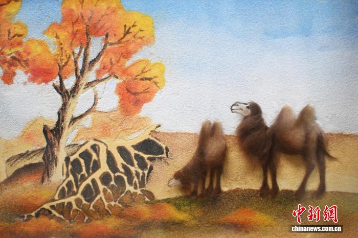 4月21日,正在苦肃省嘉峪闭市1文创产物基天内乱拍摄的驼绒绘。中新社记者 李亚龙 摄