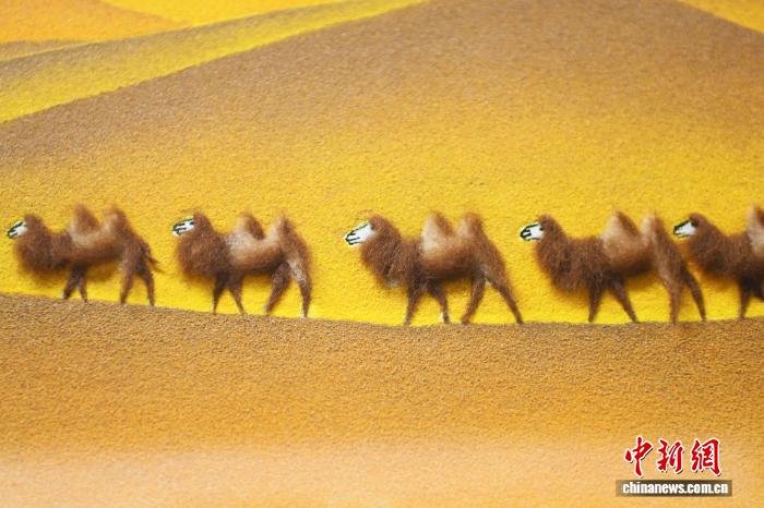 4月21日,正在苦肃省嘉峪闭市1文创产物基天内乱拍摄的驼绒绘。中新社记者 李亚龙 摄